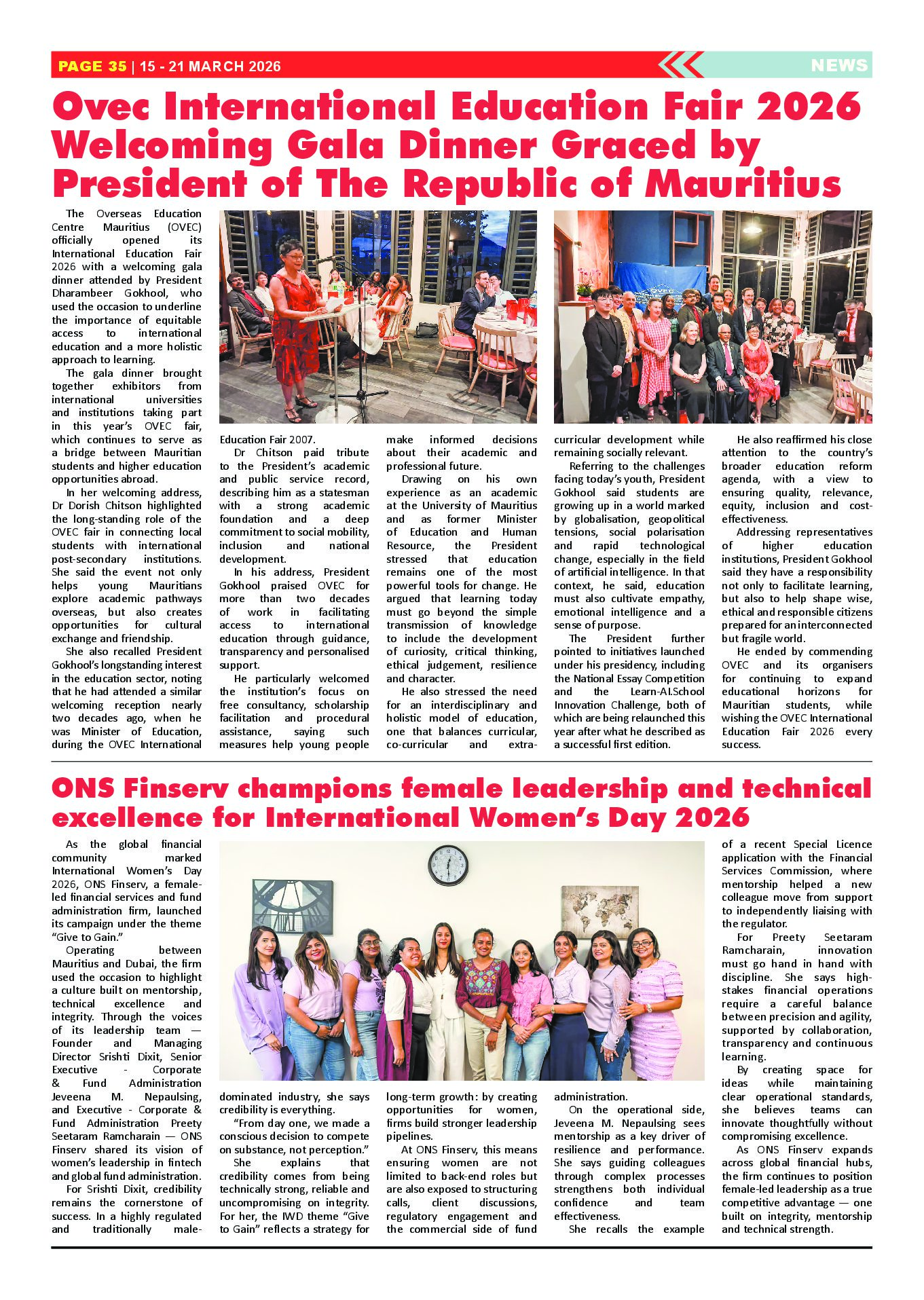 OVEC EDUCATION FAIR 2026 WELCOMING GALA DINNER GRACED BY THE PRESIDENT OF THE REPUBLIC OF MAURITIUS April 10, 2026